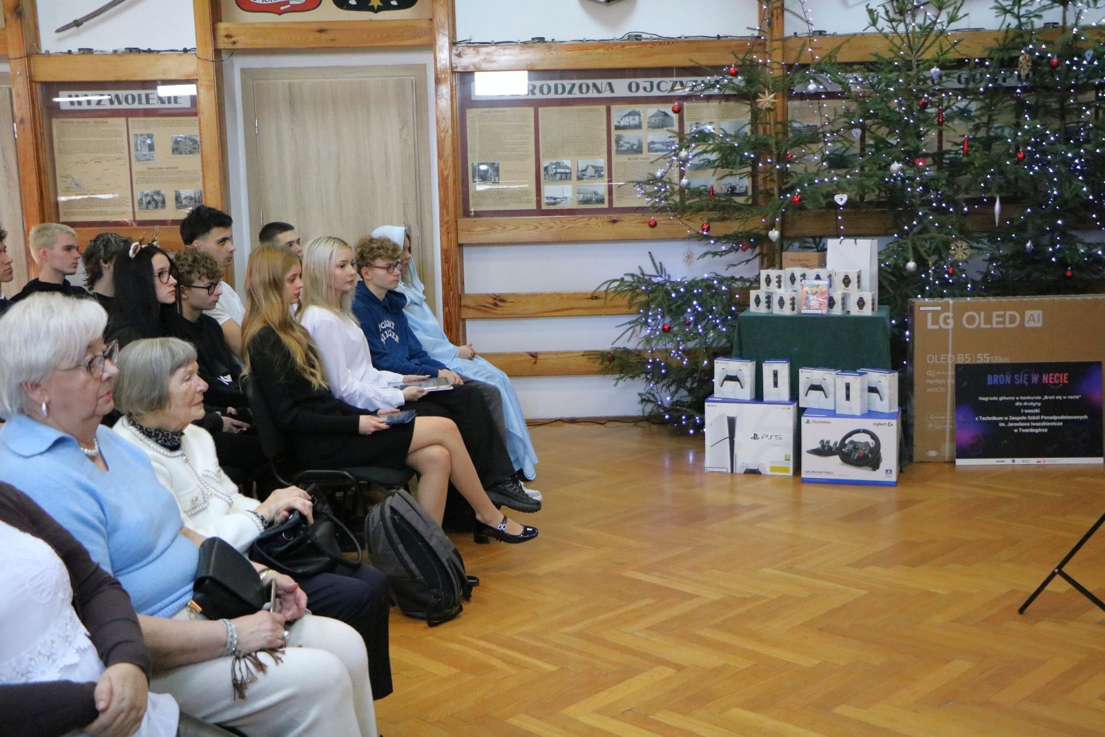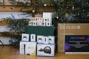 Niezwykle miłym akcentem było przekazanie nagrody głównej dla szkoły. Dzięki sukcesowi I-waszek, nasze Technikum wzbogaciło się o nowoczesną konsolę do gier wraz z czterema padami, 55-calowym ekranem OLED i kompletem akcesoriów. To wspaniały prezent pod choinkę dla wszystkich uczniów, który z pewnością umili nam przerwy i szkolne wydarzenia!
