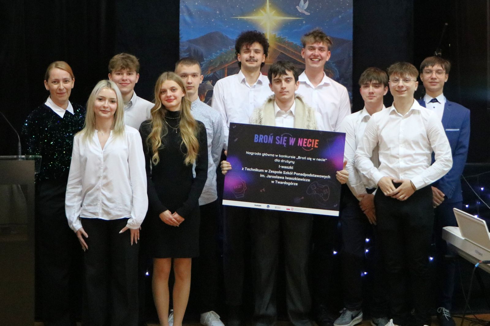 Wręczenie nagród podczas koncertu świątecznego było pięknym podsumowaniem ciężkiej pracy naszych uczniów: Marii Adamowskiej, Joanny Śliwak, Szymona Niełacnego, Jana Suszyńskiego, Błażeja Chareckiego, Michała Głowackiego, Jakuba Kowalika, Mateusza Kuśmierskiego, Szymona Markota i Igora Żareckiego. Ich sukces to dowód na to, że w naszym Technikum łączymy pasję z nowoczesną wiedzą o bezpieczeństwie w sieci.