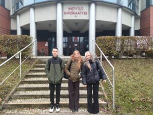 W dniu 02.12.2025 r. uczniowie klasy 3 TE: Maria Adamowska, Joanna Śliwak i Kacper Sobczyk wzięli udział w etapie okręgowym Olimpiady Statystycznej, który odbył się na Uniwersytecie Wrocławskim w Instytucie Informatyki. Zadaniem uczniów było rozwiązanie testu on-line składającego się z 29 pytań oraz 2 zadań otwartych.