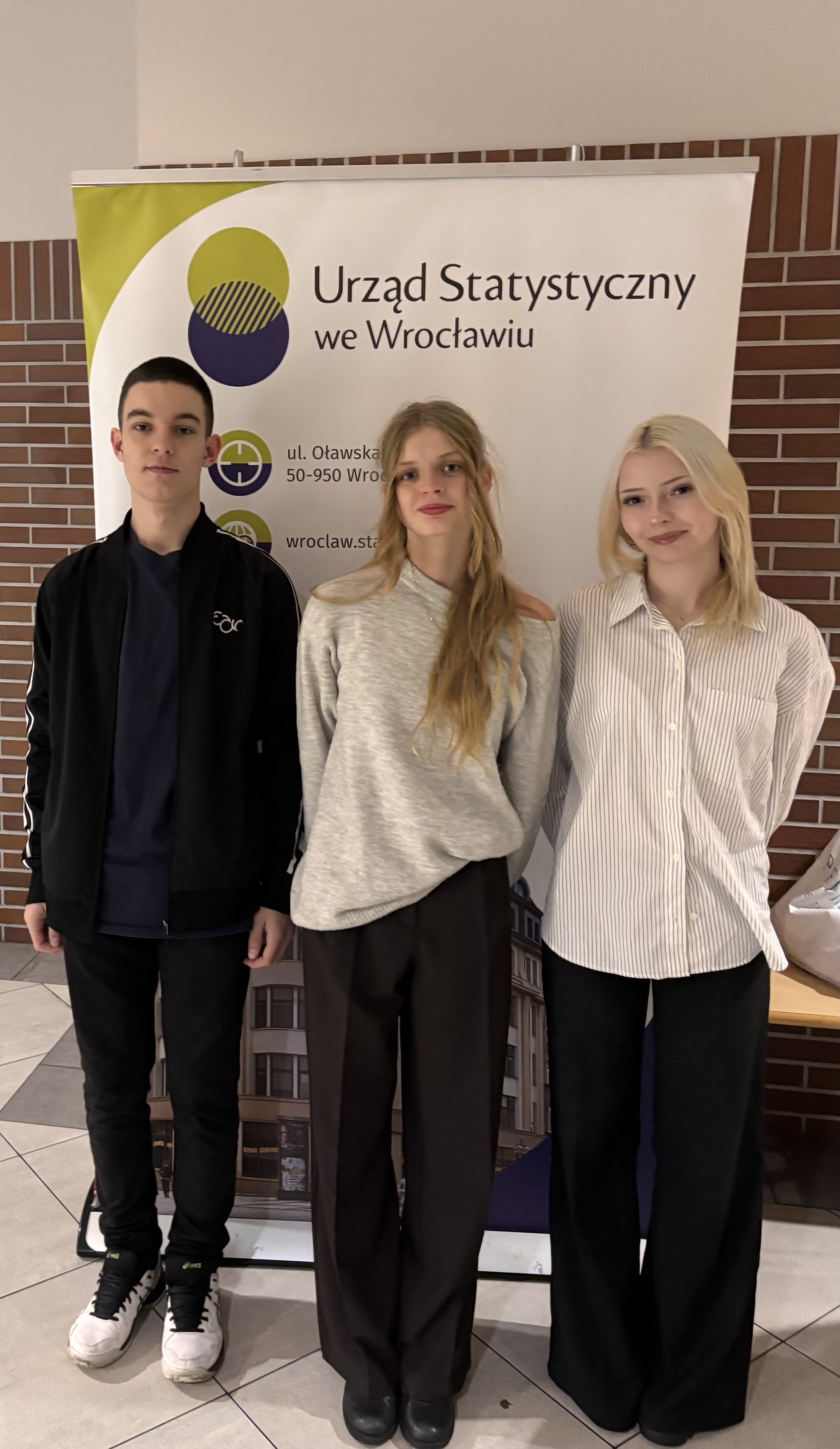 W dniu 02.12.2025 r. uczniowie klasy 3 TE: Maria Adamowska, Joanna Śliwak i Kacper Sobczyk wzięli udział w etapie okręgowym Olimpiady Statystycznej, który odbył się na Uniwersytecie Wrocławskim w Instytucie Informatyki. Zadaniem uczniów było rozwiązanie testu on-line składającego się z 29 pytań oraz 2 zadań otwartych.