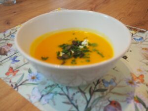 Po tak wspaniałym i aktywnym spacerze, wróciliśmy do Ptasiej Osady na zasłużony, pyszny obiad. Posililiśmy się aromatyczną zupą dyniową, wybornymi pulpecikami z miętusa z sosem grzybowym, a na deser zjedliśmy wyśmienite ciasto marchewkowe.