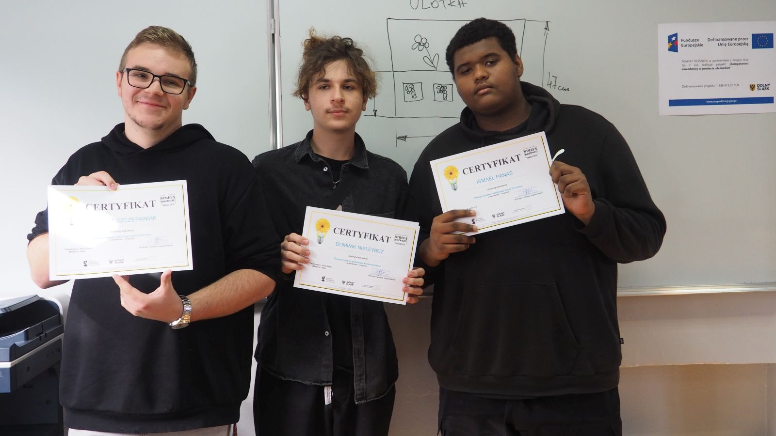 1.Powiat Oleśnicki w Partnerstwie z Project Hub Sp. z o.o. realizuje projekt pn. „Kompetentni zawodowcy w powiecie oleśnickim” nr FEDS.08.01-IZ.00-0013/23 współfinansowany ze środków Unii Europejskiej w ramach programu Fundusze Europejskie dla Dolnego Śląska 2021-2027.