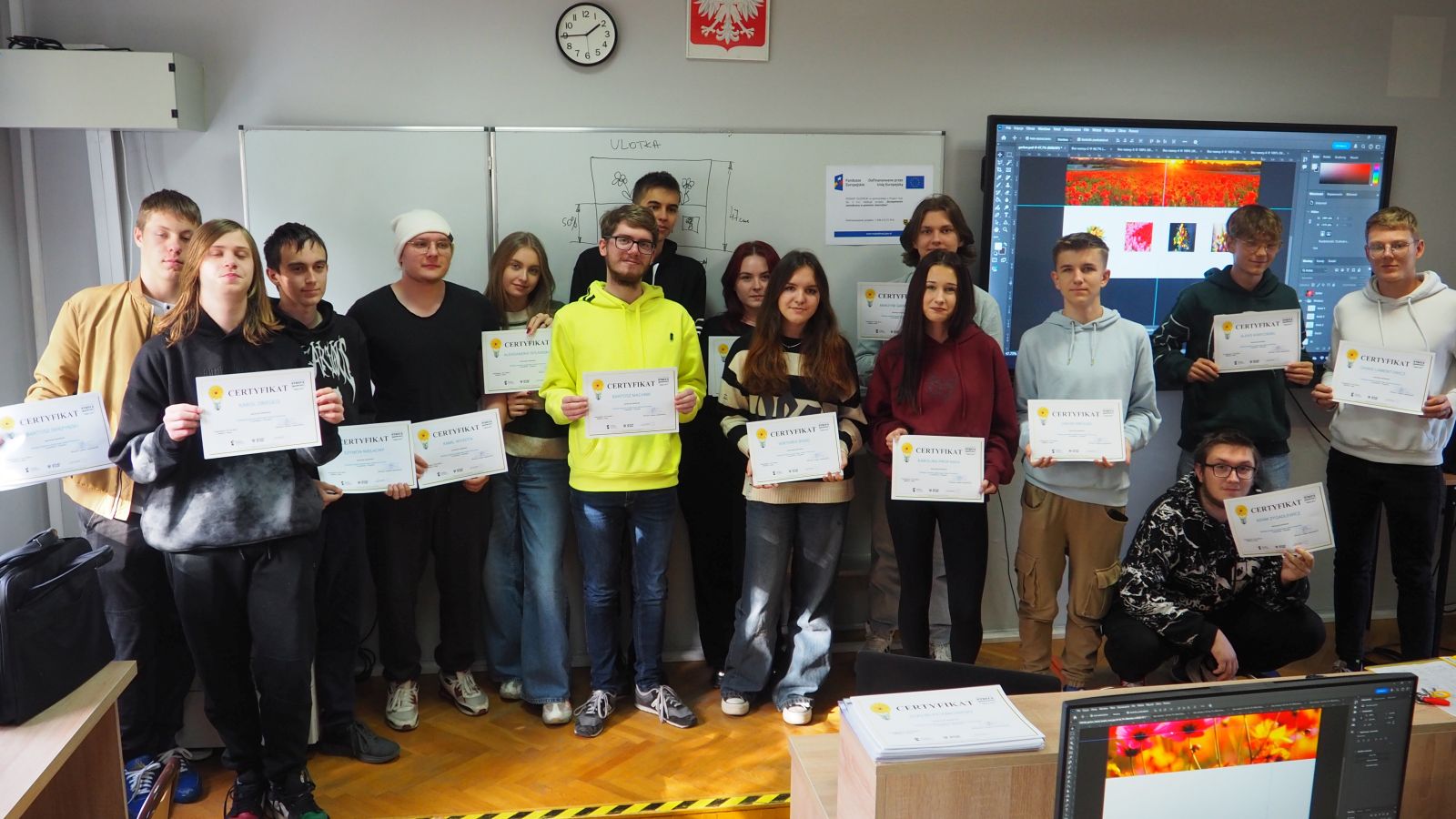 21 uczniów naszej szkoły odbyło kurs obsługi programu Adobe Photoshop. Kurs odbywał się 14-18.10.2024 r. i zakończony został egzaminem i uzyskaniem certyfikatu potwierdzającego nabycie kompetencji.