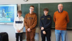 Przygotowanie konkursu i materiałów dla uczniów: pan Jaromir Żegliński, przygotowanie uczniów: pani Elżbieta Szramiak (klasa 1 TR), pan Jaromir Żegliński (klasa 1 B).