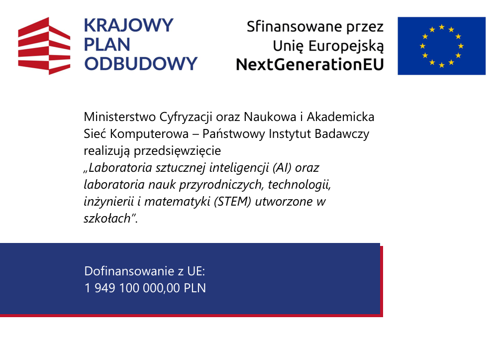 Nieodpłatne przekazanie sprzętu dla szkół w ramach realizacji inwestycji „Wdrażanie inwestycji C2.2.1 Wyposażenie szkół/instytucji w odpowiednie urządzenia i infrastrukturę ICT w celu poprawy ogólnej wydajności systemów edukacji, wskaźnik C13L Laboratoria sztucznej inteligencji (AI) oraz laboratoria nauk przyrodniczych, technologii, inżynierii i matematyki (STEM) utworzone w szkołach”