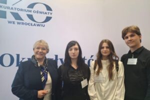 Naszą szkołę reprezentowali Amelia Piątek, Maja Kurzyńska i Maksym Gawłowski, którzy przyjechali na spotkanie razem z panią dyrektor Edytą Pciak-Rogalą.