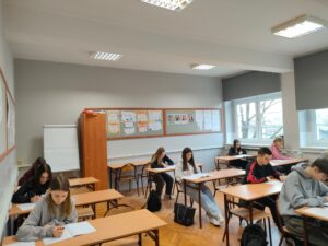 Dnia 4 grudnia 2025 r. uczniowie klasy 3 TE wzięli udział w XXI edycji Olimpiady Przedsiębiorczości, jednej z największych olimpiad przedmiotowych w Polsce. Konkurs, organizowany jest przez Fundację Promocji i Akredytacji Kierunków Ekonomicznych, we współpracy z prestiżowymi uczelniami wyższymi, m.in. SGH w Warszawie. W tym roku odbywa się pod hasłem „Przedsiębiorstwo wobec wyzwań otoczenia”, skupiając się na zagadnieniach związanych z funkcjonowaniem firm, analizą rynku oraz podejmowaniem decyzji w dynamicznie zmieniającej się gospodarce.